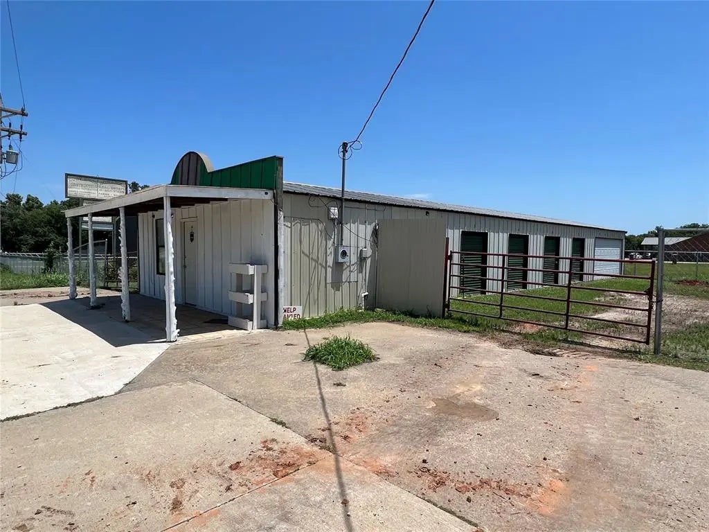 Commercial Office metal with storage units behind it. Great location and has potential for quick income with storage units rental and office space. The drive is a circle concrete and back portion has a tall chain link fence with a gate on each end towards the front of the lot along with a large metal frame for large signage on Hwy 18 (could be rented space or used for office). The office has a bathroom, large open space at entry, and large office space. ***Broker/Owner - related to owners***