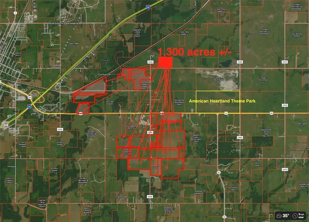 Prime development land on HW 60/Route 66 starting approximately 1/3 mile from the recently announced American Heartland theme park! We are willing to split up and sell the property in smaller parcels and are fielding offers as we work on our master development plan. The listing price REFLECTS THE MINIMUM TRANSACTION SIZE we will consider and is NOT the price for the entire 1223 acres. Our per acre prices start at $40,000 and exceed $1,000,000 in some areas, depending on the location. Contact us today for more information.