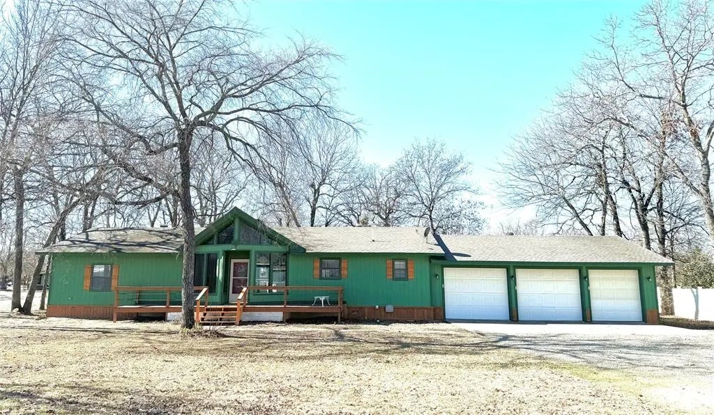 Rare find! Turnkey, fully furnished lake house retreat in the highly desirable Sandy Bass Bay on Lake Eufaula that sits on 3 large corner lots. HIGHLIGHTS 36x40 pavilion that is used for entertaining and RV/boat storage. 28x28 shop with a restroom (guesthouse conversion optional). 2 small sheds for MORE storage. Covered back porch with bar for MORE entertaining or relaxation. Huge fire pit area. Large area for parking. Fenced area right off the back door for the fur friends or a play area. Underground storm shelter just steps from the back door. 2 Boat ramp options, many beaches just a golf cart/ATV ride away. Airbnb/VRBO friendly. Golf cart/ATV friendly. This spacious open floor plan features 3 beds/2 baths and THREE car garage. Gorgeous vaulted/beam ceiling. The open living has a wood burning stove and offers plenty of space for entertaining. All furnishings that stay include; washer/dryer/refrigerator/and bedroom/living room/dining room furnishings. Don't miss the opportunity to make this your own lakeside haven. Whether you're seeking a weekend getaway, a year-round residence or income property, this property offers the perfect combination of comfort and lake access. ****THIS IS NOT A MOBILE HOME/TRAILER****