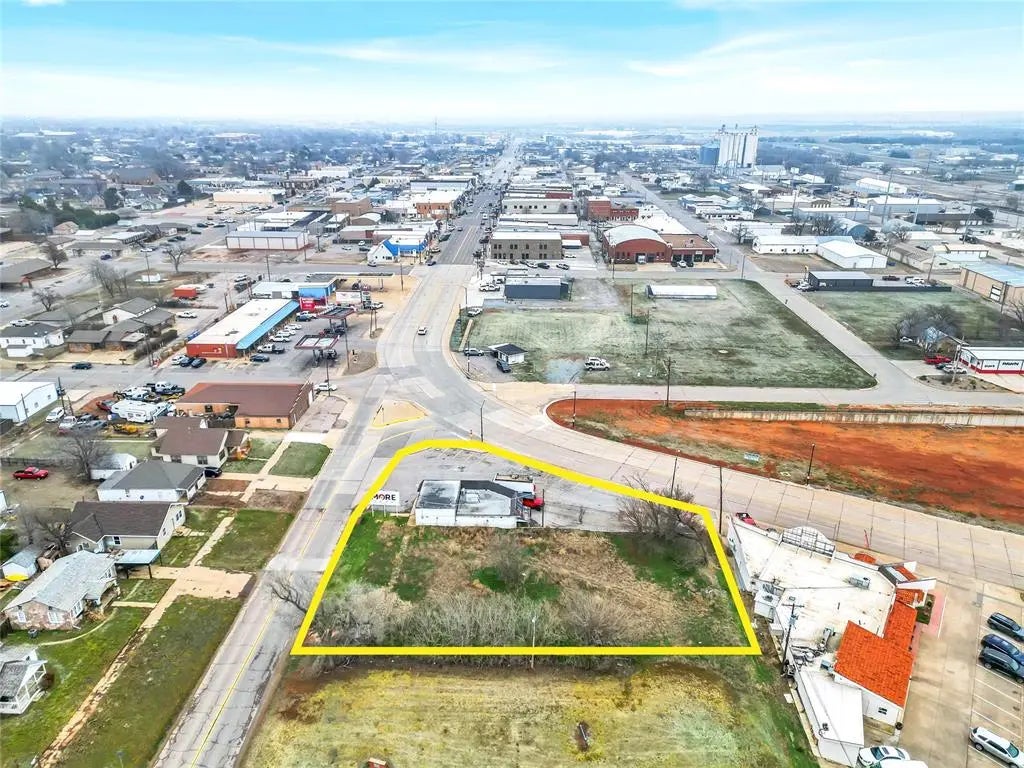 This property is being offered for sale in 2 tracts. Tract #1 is the portion on the Main Street curve that includes lots 13 and 14 and the existing building. List price is $310,000. Tract #2 includes Lots 15,16,and 17 & the W/2 of 18, Block 64 O.T. These are vacant City lots that have frontage along Old Hwy 66. The price for Tract #2 is $95,000. Tract #1 must sell first before Tract #2 can be sold. Of course the two tracts can be packaged together in one purchase contract This is a great location on the Main Street curve and Historic Route 66, this property has impressive visibility from every angle and can be seen from downtown. The existing building has approximately 1336 sq. ft. of versatile space and a 12' overhead door. Equipped with 3-phase electric and surrounded by asphalt parking on all three sides. This has been a successful location for a food truck & has potential for expanding that concept. Keep in mind that lots on Main Street are getting increasingly difficult to find . . . so don't miss out on this opportunity! Call today for more information!