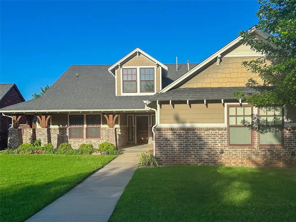 This impeccably maintained home is a must see in the popular Town Square neighborhood in highly desirable east Edmond. With a larger living room than most McCaleb homes, you can spread out and also enjoy the large outdoor deck. All on one level, this home has a wonderful floor plan with 3 bedrooms, two full baths, one half bath, and a dedicated study. The kitchen is bright and airy with subway tile in a herringbone pattern, stainless steel appliances and not one, but two kitchen islands. A beautiful stone fireplace, beams and a large bank of east facing windows were enjoyed by the owner. Off the kitchen is a single door leading to the deck for easy access, also a small alcove leads to the half bath and the dedicated study. Hardwood floors throughout the home except for wet rooms and bedrooms. Neighborhood amenities include a pond, trail, and swimming pool (Use of swimming pool has added HOA dues from what is listed. The new owner can opt-in for the Resort Style Pool, Residents Clubhouse with a gym and studio, and the Recreational Clubhouse for an additional $550.00 per year). The neighborhood location is ideal for quick access to major highways. One mile from where the new Whole Foods will be. Convenient location for all major shopping and restaurants. Please see this one in person! Call for your personal tour today!