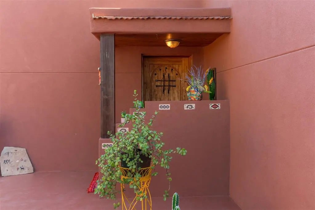 The Ultimate Adobe Sanctuary: A Fortress with Native American Roots This adobe home, on 20 acres of stunning landscape, is a fortress and a sanctuary. Constructed with 12-inch-thick concrete and stucco walls boasting an R50 insulation rating, and a six-inch sloped concrete roof designed to channel rainwater, it’s as energy-efficient as it is durable. Reinforced windows with steel plates, two-inch-thick alder wood doors with oak cross-timbers, and a steel-doored basement shelter make it a true stronghold. Inside, the home radiates warmth and craftsmanship. Hand-stained concrete floors, grooved to resemble rustic tile, pair beautifully with 12-inch log beams that frame the ceilings. A corner fireplace adds an impressive focal point, while custom red oak cabinets and tile inlays enrich the kitchen’s charm. Thoughtful details like a cherry-red clawfoot tub and mission-style alder wood doors reflect timeless elegance. The layout ensures stunning views of the courtyards and surrounding property, creating a seamless blend of comfort and functionality. This home is deeply rooted in Native American heritage, evident in its design, materials, and orientation. Stucco walls, handcrafted finishes, and a thoughtful connection to the land honor traditional principles. More than just a home, this adobe sanctuary offers security, serenity, and a profound sense of history—an extraordinary place to live and thrive. The property is equally impressive. A serene pond, a creek lined with pecan and persimmon trees, and open pastures create a natural haven. A fully insulated greenhouse supports year-round gardening, while a 16x30-foot workshop with an office provides versatile space for projects or quiet retreats. A cozy bunkhouse with heat and air conditioning offers additional living space, making the property perfect for self-sufficiency and relaxation. Buyer to verify all information. Square footage does not include bunk house or green house.