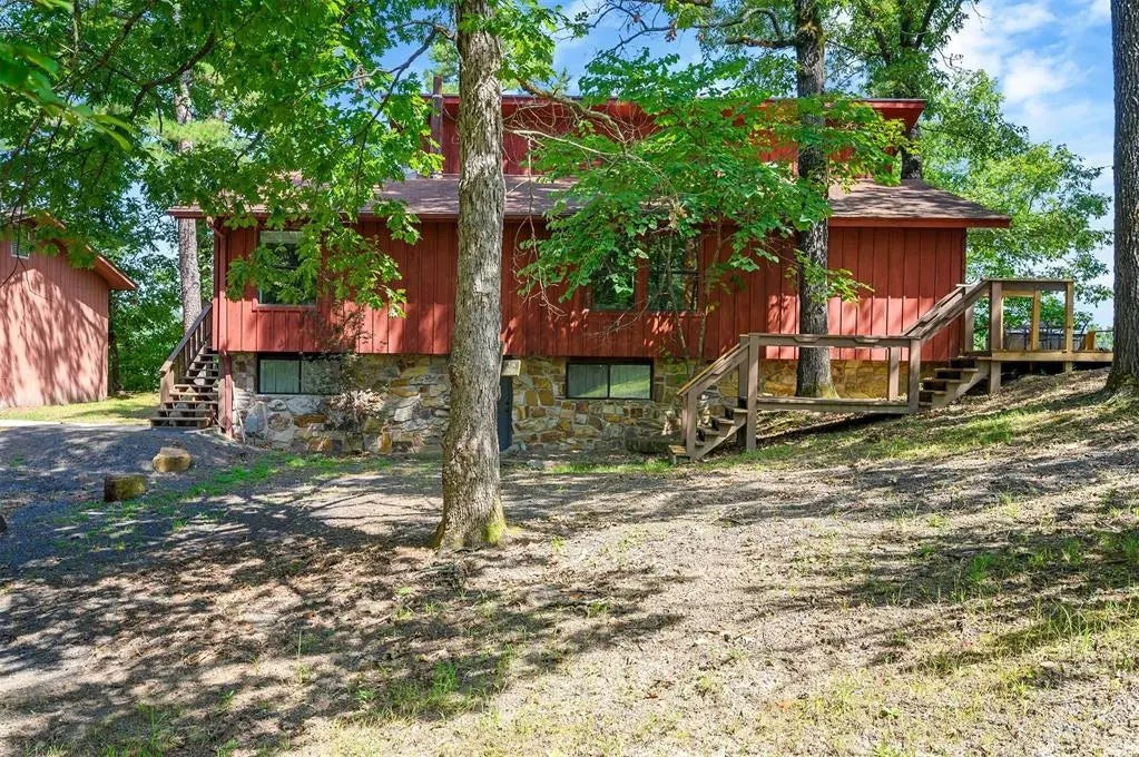 Welcome to your home away from home at River Ridge, where this multi level cabin offers a million dollar view! Do you dream of sipping coffee in the morning while staring into the vast Ouachita mountain range? Or getting lost in your thoughts as you listen to the bustling Mountain Fork River below? Then welcome home to River Ridge, perched on a bluff overlooking the river. This split level cabin offers three floors of living space. The main level features the large kitchen, a formal dining room with a large table, along with a cozy living room and the primary bedroom. Get a breath of fresh air and head outside as it leads you to the second floor balcony where you'll get a breathtaking view of the mountain range and river flowing. Wander upstairs to the third floor where you'll find the game room, featuring a foosball table and billiards. Here you'll find the additional balcony with a porch swing where you'll be able to glimpse an absolutely jaw-dropping panoramic view. Down two levels is the finished basement where the two secondary bedrooms are as well as a full bathroom and laundry room. Outside there is a 6 person hot tub on the main deck, overlooking the flowing river as well as a fire pit and a slide built into the hill. This cabin sits on 8.7 acres, just enough space to build another cabin or enjoy this little slice of heaven just for yourself. Additionally, there is a detached three car garage with a lean to. Are you the outdoorsy type? Enjoy hiking, fishing and canoeing on the property. New roof in August 2024. Cabin comes fully furnished. River Ridge is located just 45 minutes from Hochatown and Broken Bow Lake, three hours to Dallas and four hours to Oklahoma City. Are you ready to spend quality time with your loved ones while enjoying one of the most beautiful views that a cabin in South Eastern Oklahoma has to offer? Then don't wait to schedule your tour of River Ridge. New roof August 2024.