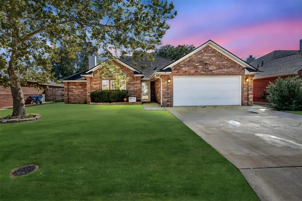 NEW FLOORING IN THIS BEATIFULLY UPDATED 4-BEDROOM BRICK HOME. Welcome to this spacious and inviting brick home located in a friendly neighborhood. Offering approximately 2,394 sq. ft. of comfortable living space, this property has been thoughtfully updated with fresh, professional interior paint (October 2024), brand-new carpet in the living room, and new laminate flooring throughout (September 2025). The home features a bright and welcoming living room with abundant natural light and a cozy gas fireplace that flows seamlessly into the dining area. The split floor plan provides added privacy, with the large Primary Suite tucked away on one side of the home. The Primary Suite includes an en-suite bathroom and a spacious walk-in closet. The additional bedrooms are generously sized and each includes its own walk-in closet. The kitchen features granite countertops, a ceramic backsplash, and all major appliances: built-in stovetop/oven, microwave, dishwasher, and refrigerator. A charming breakfast nook makes the perfect spot for casual meals. You’ll also appreciate the convenient laundry room located near the bedrooms. Step outside and enjoy the covered back patio, plus an additional covered patio area perfect for entertaining or relaxing. For peace of mind, an in-ground storm shelter is included. A 2-car garage and rain gutters complete this functional and beautiful home. This move-in ready property offers modern updates, abundant space, and thoughtful features.