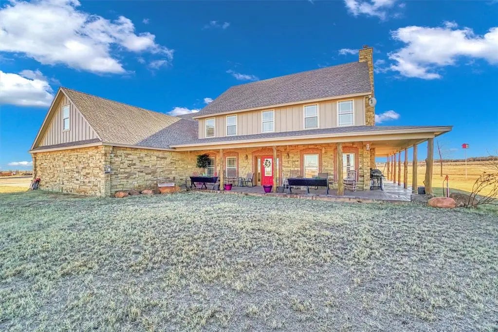Country living! This custom built home with a wrap around porch sits on 55 acres of pasture land. This house has 5 bedrooms, 4 full baths and 2 half baths. This kitchen has granite countertops, newly restored cabinets, stainless steel appliances, 2 sinks, walk in pantry, and plenty of counter space and storage. The dining room sits next to the kitchen with a wonderful view of the new deck and pool. Next is the living room that has a stunning wood burning fireplace. The oversized master bedroom has plenty of room for extra seating perfect for a reading space. This master bathroom has a walk-in shower, jacuzzi tub, separate sinks with a vanity, and two walk-in closets that have custom built-ins for all your storage and organizational needs. The office is a good size with tons of storage and a utility closet. As you go upstairs you will notice the custom woodwork railing that leads up to an entertainment area. Upstairs is where you will find the rest of the bedrooms, bathrooms, and the large entertainment room perfect for a movie or game night. This home is perfect for entertaining a houseful. Once outside you will notice the stamped concrete along the wrap around porch that will lead you to the newly established deck and pool area. There is a barn that is 90x70ft, with 30ft lean-to's on each side, and a covered parking area when you pull up, for a total of approximately 13,800sq ft under roof. The barn has a hydraulic door to open on the east side and a traditional roll up door on the west side, perfect for working on big machinery. The ~55 acres are currently in Bermuda grass, perfect for raising your own hay, or having your own herd of animals.