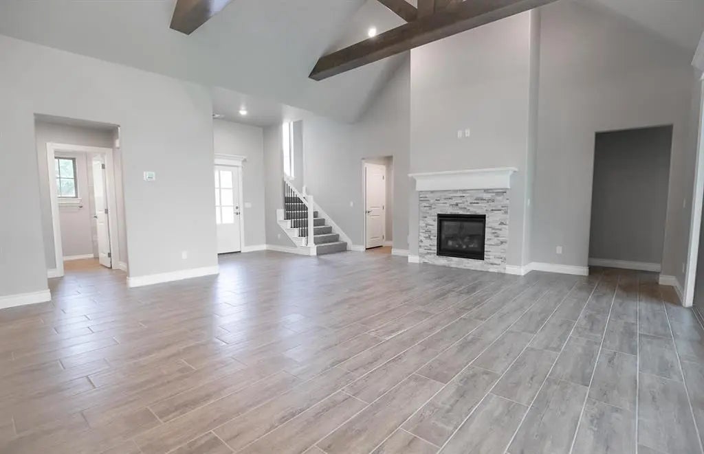 This Zade Bonus Room floor plan includes 3,105 Sqft of total living space, which features 2,850 Sqft of indoor space and 255 Sqft of outdoor living. This spectacular home offers 4 bedrooms, 3 bathrooms, a bonus room, a utility and mudroom, covered patios, and a 3-car garage with carriage doors and an in-ground storm shelter. The great room welcomes wood-look tile, a breathtaking cathedral ceiling with crows feet and a ceiling fan, a luxury 3-panel sliding door with a 4' back patio extension, rocker switches throughout, and Cat6 wiring. The up-scale kitchen presents stainless steel appliances featuring a 5-burner cooktop and double ovens, 3 CM countertops, well-crafted cabinets to the ceiling with under cabinet lighting and cabinet hardware installed throughout, a corner pantry, decorative tile backsplash, more wood-look tile, exclusive pendant lighting, and a large center island equipped with a trash can pullout, dishwasher, and farm sink. The primary suite has a sloped ceiling detail with a ceiling fan, windows, carpeted flooring, and our cozy carpet finish. The primary bath includes a European walk-in shower, a free-standing tub, a private water closet, a dual sink vanity with framed mirrors, 3 CM countertops, and a HUGE walk-in closet! Secondary bedrooms all feature high ceilings with a ceiling fan, spacious closets, windows, and carpeted flooring. Step outside to enjoy the covered back patio which offers a wood-burning fireplace, a gas line, and a TV hookup. Other amenities for this new build include our healthy home technology, a tankless water heater, a whole home air filtration system, R-44 insulation, and so much more!