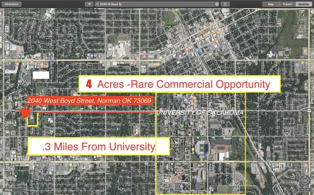 SORRY PROPERTY TEMPORALITY OFF THE MARKET It should come back on the market soon. THE RAREST OF OPPORTUNITIES: Beautiful tree lined acreage, perfect for development! Includes a beautiful Church sanctuary, parsonage, soccer and athletic fields, gardens and so much more! An opportunity like this is virtually unheard of! (4 acres of land, zoned commercial !!!) Only 1.4 miles from the University of Oklahoma! DON'T MISS OUT!