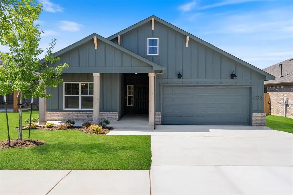 *This home qualifies for an exclusive financing promotion* This open layout maximizes space while offering abundant natural light and a versatile design. You'll appreciate the expansive island that overlooks the living area, complemented by quartz countertops and built-in appliances, including a gas range. The main living areas include durable hard surface flooring and a stunning fireplace, perfect for cozy evenings at home. The study, which overlooks the living area, serves as an ideal flex space. The primary bedroom is generously sized, and the primary bath features a large quartz vanity with dual sinks, a freestanding tub, a tiled shower, and a spacious walk-in closet. Skyline Trails is located in the highly sought-after Mustang school district and our residents will love the playground, splashpad, walking trails, and creek. Included features: * Peace-of- mind warranties * 10-year structural warranty *Guaranteed heating and cooling usage on most Ideal Homes * Fully landscaped front & backyard * Fully fenced backyard. Floorplan may differ slightly from completed home.