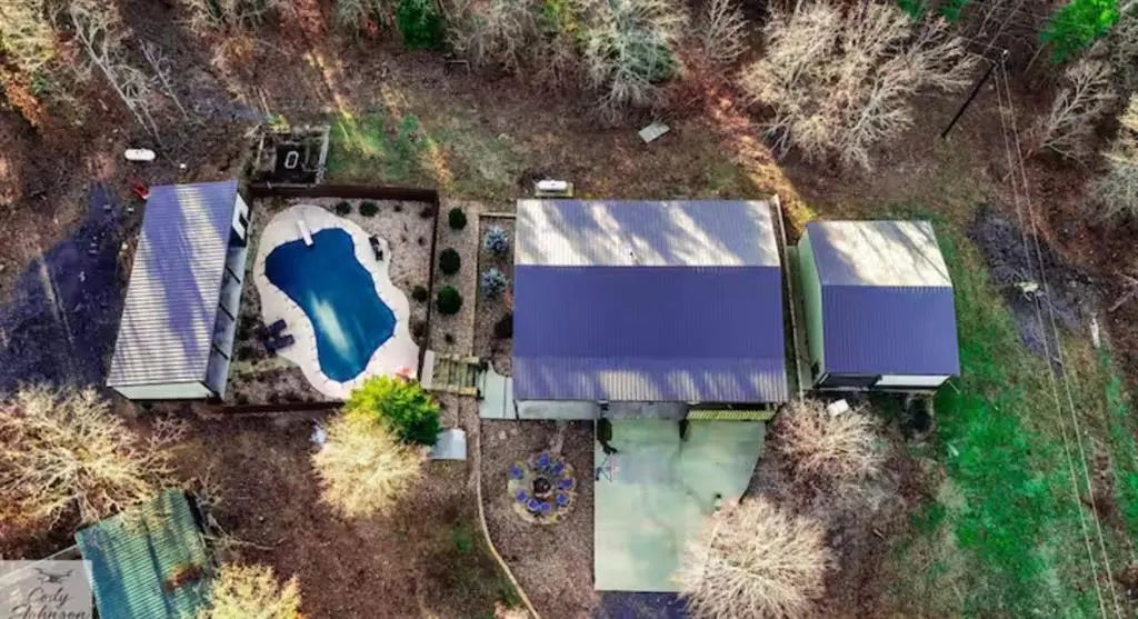 Are you looking for something unique and a solid investment? Look no further! Four Bedrooms 3 bath and an apartment by the pool!This property sits on 5 acres with a creek. The outbuildings include an 80'x40' metal building sitting on a slab, insulation, HVAC, 800 amp service, and a full bathroom, as well as a 30'x40' metal building that also on a slab, insulation, HVAC, plumbing, and 400 amp service. Additional amenities include a chicken coop with fencing, an outdoor covered grill area, and a spacious outdoor kitchen and bar area with an in-ground swimming pool.