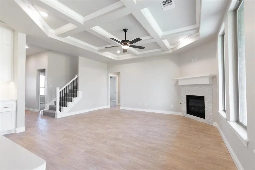 This Hazel Bonus Room 5 Bedroom has 2,735 Sqft of total living space, which includes 2,520 Sqft of indoor living space and 215 Sqft of outdoor living space. This two-story luxury home offers 5 bedrooms, 3 full baths, 2 covered patios, a spacious bonus room, a large utility room, and a 3-car garage with an in-ground storm shelter installed. The living room presents a stacked stone corner gas fireplace, three 7’ windows, wood-look tile, Cat6 wiring, rocker switches throughout, and an impeccable coffered ceiling with a ceiling fan and crown molding. The kitchen supports stainless steel appliances, including a 5-burner cooktop and double ovens, custom-built cabinets to the ceiling with cabinet hardware and under cabinet lighting, upgraded 3 CM countertops, stunning pendant lighting, a large corner pantry, modern tile backsplash, and an oversized island with a built-in trash can pullout. The primary suite offers a sloped ceiling with a ceiling fan, windows, and our cozy carpet finish. The prime bath features a dual sink vanity with framed mirrors, a free-standing tub, a walk-in shower, a private water closet, and a HUGE walk-in closet. Covered outdoor living boasts a wood-burning fireplace, a gas line for your grill, and a TV hookup for your flatscreen. This home also offers our healthy home technology, a tankless water heater, a whole home air filtration system, R-44 insulation, and more!