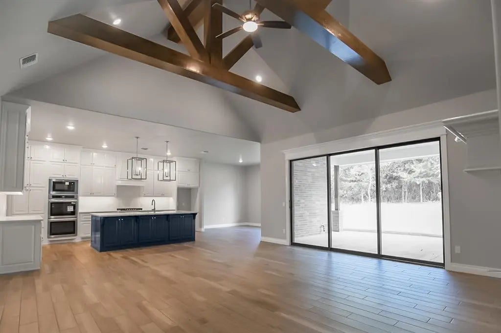 This Wesley Bonus Room floor plan includes 3,630 Sqft of total living space, which features 3,285 Sqft of indoor living space and 345 Sqft of outdoor living space. There is also a 590 Sqft, three car garage with carriage doors and an in-ground storm shelter installed. This desirable home offers 5 bedrooms, 3 full bathrooms, 2 covered patios, a large bonus room, a powder room, and a utility room. The great room supports an immaculate cathedral ceiling with a crows feet detail, a luxurious 3-panel sliding door with a 4' back patio extension, a ceiling fan, wood-look tile, rocker switches throughout, Cat6 wiring, and a gas fireplace surrounded by our exquisite stacked stone detail. The upscale kitchen boasts stunning pendant lighting, stainless steel appliances, including double ovens and a 5-burner cooktop, 3 CM countertops, vogue tile backsplash, well-crafted cabinets to the ceiling with cabinet hardware installed throughout and under cabinet lighting, soft close drawer glides and hinges, a separate walk-in pantry, and a large center island that holds our new work station sink, a dishwasher, and a trash can pullout. The primary suite provides a sloped ceiling detail with a ceiling fan, a plush carpet finish, and windows. Attached is the main bath which has a batwinged vanity with framed mirrors, a large European walk-in shower, a private water closet, a free-standing tub, and a HUGE walk-in closet! The covered outdoor living area welcomes a wood-burning fireplace, a gas line for your grill, and a handy TV hookup. Other included features for this elegant home include our healthy home technology, an air filtration system, a tankless water heater, double glazed vinyl low E windows with argon, R-44 and R-15 insulation, a fresh air ventilation system, and so much more!