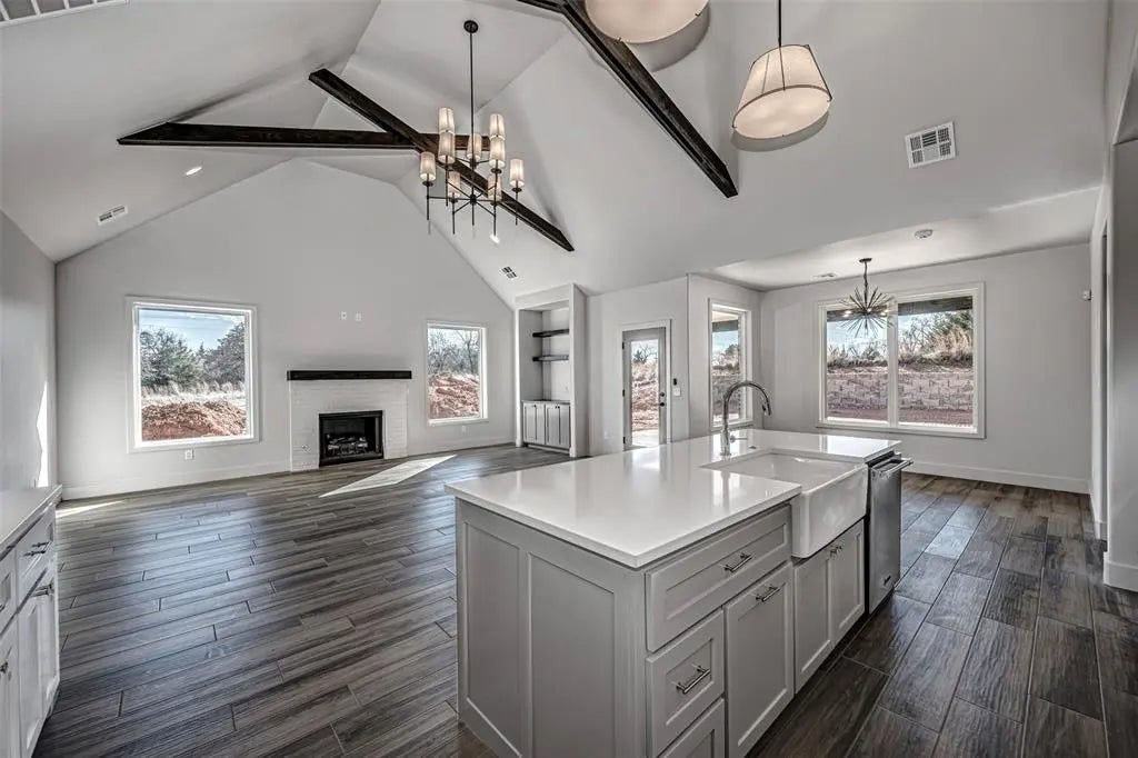 $20,000 Price Reduction. New Transitional Home in Gated Community and Pool. Offering 3 Beds, Study/Flex Room, 3.5 Baths, Bonus Room, 2nd and 3rd Bed Upstairs with Full Bath. Downstairs Bedroom with semi-private Bath. Beamed Ceilings in Living and Kitchen. Open floor plan from Great Room with Fireplace to Chefs Kitchen. Lots of Kitchen Counter Space and Cabinets, Quartz Counters, Deep Farm Sink, 5 Burner Gas Cook Top and Griddle, Oven with Air Fryer, Large 8ft Island Breakfast Bar with Farm Sink. Butler's Pantry Quartz counters, Cabinets and electrical for appliances plus a walk-in pantry. Wood Tile Floors throughout Kitchen, Living Areas and Study. Private back yard with no neighbor view, Oversized Covered Patio, Cable, Gas Fireplace, Gas hook up For a Grill. Your Owners Suite with Deep Soaking Tub, Dual Vanities and Make Up Bar. Master Closet with Chests connects to Utility Room with Sink and Hall Mud Room. Tankless Hot Water System. Community Pool, Club House, and Playground. Easy Access to I-35 and Shopping.