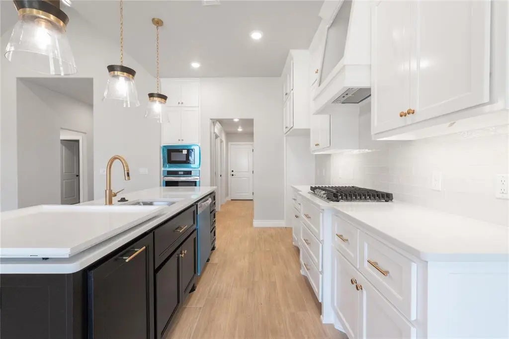FENCING AND BLINDS INCLUDED! This Blue Spruce Bonus Room 1 floor plan includes 2,640 Sqft of total living space, which features 2,350 Sqft of indoor living and 290 Sqft of outdoor living space. There is also a 590 Sqft, three car garage with an in-ground storm shelter installed. This home offers 4 bedrooms, 3 full baths, 2 covered patios, a large bonus room, and a utility room. The great room welcomes a pristine cathedral ceiling with a ceiling fan, excellent wood-look tile, rocker switches throughout, Cat6 wiring, and large windows. The kitchen supports stainless steel appliances, 3 CM countertops, a center island with a trash can pullout installed, well-crafted cabinets to the ceiling with under cabinet lighting and cabinet hardware installed throughout, exceptional pendant lighting, and a separate walk-in pantry. The primary suite features a sloped ceiling with a ceiling fan, windows, and our cozy carpet finish. The attached primary bath hosts separate vanities with framed mirrors, a European walk-in shower, a free-standing tub, a private water closet, and a HUGE walk-in closet. Outdoor living has a wood-burning fireplace, a gas line, and a TV hookup. Other amenities include our healthy home technology, a tankless water heater, a whole home air filtration system, R-44 insulation, and so much more!