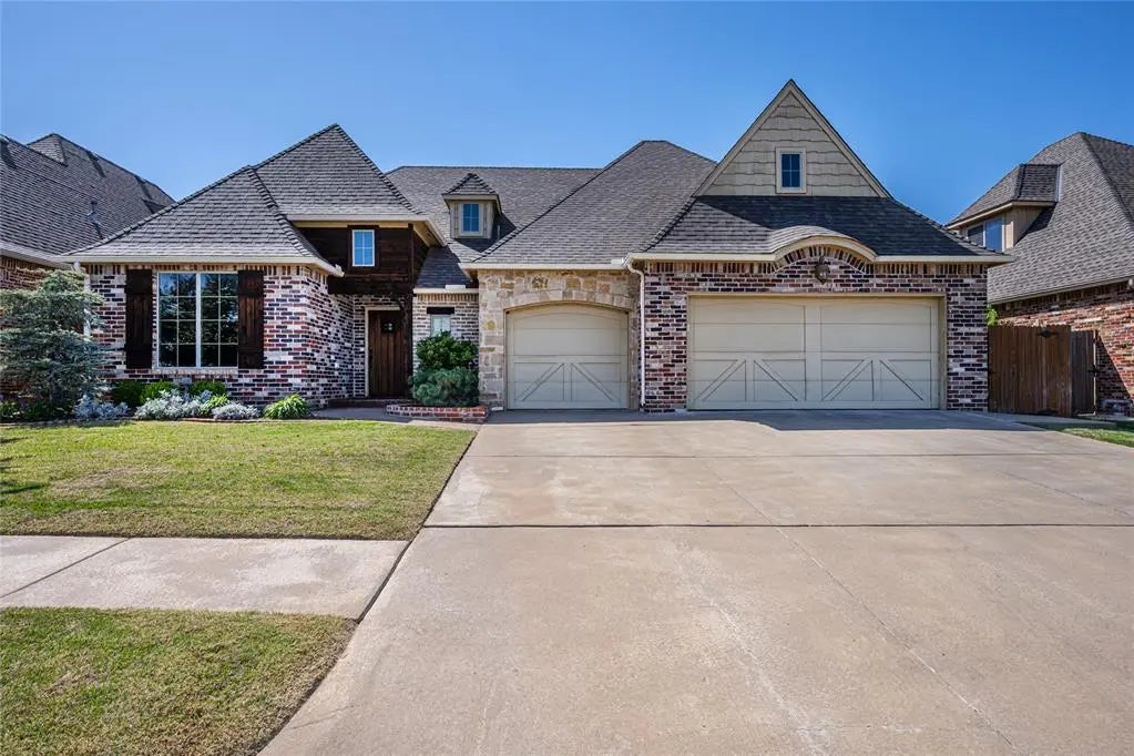 Welcome to The Lakes at Traditions! Gated Edmond neighborhood featuring a community pool, clubhouse, fitness center, stocked fishing pond, playground & dog park! Quality built with attention to detail & exceptional craftmanship! Home features 3 bedrooms all downstairs, 2 full baths, 2 half baths, study, formal dining, family room & bonus room up! Kitchen open to the family room features granite counter tops, breakfast bar, cathedral ceiling, island, large pantry, stainless appliances & dinette. Family room with crown molding, hand scraped wood floors, fan, high ceilings, stone fireplace w/gas logs and bar area w/wine fridge. Formal dining with crown molding. Handsome study with fan, glass doors and wood floors. Half bath off entry for guests. Primary bed with fan, walk-in closet and spacious bath which features a whirlpool tub, shower & granite counters w/2 sinks. 2nd with fan & crown molding. 3rd bed with fan, crown molding & walk-in closet. Hall bath with tub and granite. Utility room with mud bench & storage. Upstairs features a large bonus room with fan, closet & half bath w/granite...could be used as a 4th bedroom or gameroom, etc... Spacious 3 car garage with storm shelter! Pretty backyard for peaceful evenings on the patio also features a nice storage building and pergola. Sprinkler system front/back. Extremely well maintained and move-in ready! Edmond Schools. Easy access to shopping, dining and turnpike.