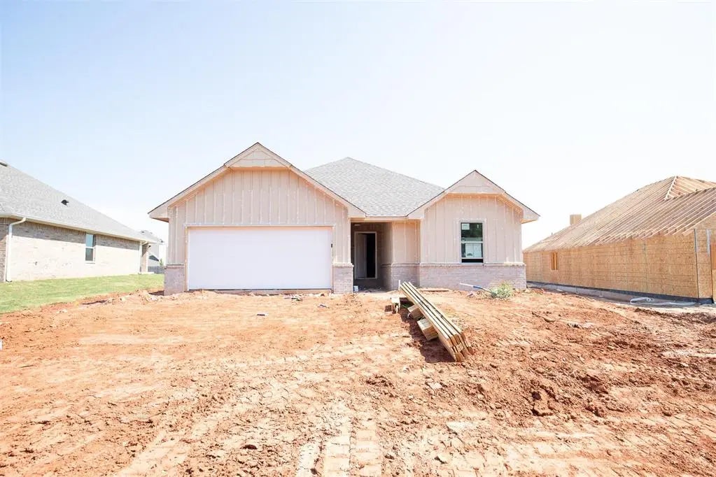 FENCING AND BLINDS INCLUDED! This Norma floor plan includes 1,425 Sqft of total living space, which includes 1,300 Sqft of indoor living and 125 Sqft of outdoor living space. There is also a 385 Sq Ft, two car garage with a storm shelter installed. This amazing and affordable home offers 3 bedrooms, 2 full bathrooms, 2 covered patios, and a utility room! The great room presents a 10-ft ceiling with large windows, wood-look tile, a ceiling fan, hand-textured walls, and Cat6 wiring. The spacious kitchen includes beautiful countertops, stainless-steel appliances, custom-built cabinets, wood-look tile, a large corner pantry, and a center island that holds a dishwasher and a roomy sink. The primary suite supports a high ceiling, lovely windows, a ceiling fan, Cat6 wiring, and our cozy carpet finish. The primary bath is attached and holds a dual sink vanity with an elegant countertop selection, satin nickel delta features, an elongated water saving toilet, and a spacious walk-in closet. Outdoor living includes fully sodded yards, a smart home irrigation system, and 30-yr weather wood shingles. Other amenities include a tankless water heater, R-15 insulation, a fresh air intake system, and so much MORE!