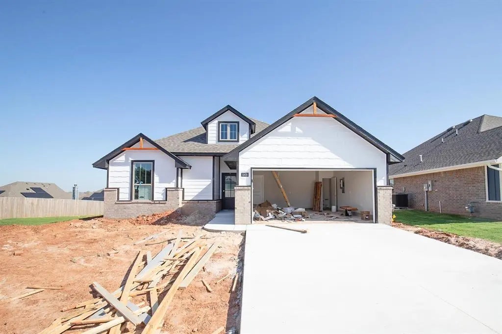 FENCING AND BLINDS INCLUDED! This Teagen floor plan includes 1,715 Sqft of total living space, which features 1,625 Sqft of indoor living space and 90 Sqft of outdoor living space. There's also a 390 Sqft, two car garage with an in-ground storm shelter installed. The timeless Teagen offers 3 bedrooms, 2 full bathrooms, 2 covered patios, and a utility room. The living room presents a corner gas fireplace surrounded by our stacked stone detail, wood-look tile, a ceiling fan, and large windows. The high-end kitchen supports a large center island, stunning pendant lighting, 3 CM countertops, a corner pantry, upgraded custom-built cabinets to the ceiling, modern tile backsplash, and stainless-steel appliances. The prime suite includes a sloped ceiling detail with a ceiling fan, windows, and our cozy carpet finish. The primary bath includes a walk-in shower, a free-standing tub, separate vanities, a private water closet, and a spacious walk-in closet! Need more storage? We’ve even included a built-in mudbench! The covered back patio offers a wood-burning fireplace, a gas line for your grill, and a TV hookup. Other amenities include healthy home technology, an air filtration system, a tankless water heater to provide endless hot water, R-44 insulation, and so much more!