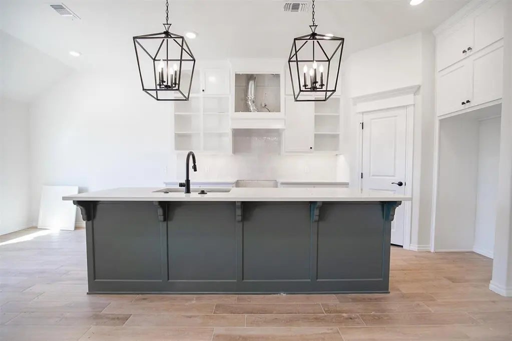 FENCING AND BLINDS INCLUDED! This Teagen floor plan includes 1,715 Sqft of total living space, which features 1,625 Sqft of indoor living space and 90 Sqft of outdoor living space. There's also a 390 Sqft, two car garage with an in-ground storm shelter installed. The timeless Teagen offers 3 bedrooms, 2 full bathrooms, 2 covered patios, and a utility room. The living room presents a corner gas fireplace surrounded by our stacked stone detail, wood-look tile, a ceiling fan, and large windows. The high-end kitchen supports a large center island, stunning pendant lighting, 3 CM countertops, a corner pantry, upgraded custom-built cabinets to the ceiling, modern tile backsplash, and stainless-steel appliances. The prime suite includes a sloped ceiling detail with a ceiling fan, windows, and our cozy carpet finish. The primary bath includes a walk-in shower, a free-standing tub, separate vanities, a private water closet, and a spacious walk-in closet! Need more storage? We’ve even included a built-in mudbench! The covered back patio offers a wood-burning fireplace, a gas line for your grill, and a TV hookup. Other amenities include healthy home technology, an air filtration system, a tankless water heater to provide endless hot water, R-44 insulation, and so much more!