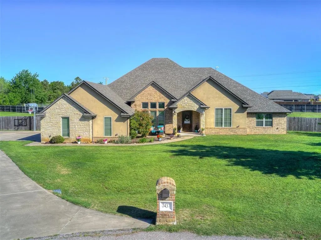 WOW! Seller has a new pool liner on order & is offering a $10,000 Credit to Buyer with approved offer for Landscaping or other cosmetic changes the Buyer wants! This home in Rio de Bella is designed to meet the needs of modern living while retaining timeless charm! The property features an open-concept layout that seamlessly integrates the living, dining, and kitchen areas, making it ideal for entertaining guests. The kitchen is equipped with top-of-the-line appliances, granite countertops, and a large island that provides space for meal preparation and socializing. The living area includes a striking stone fireplace and large windows that provide natural light and picturesque views of the patio and pool. The dining area is suitable for both intimate dinners and larger celebrations, providing a warm and inviting atmosphere. The first floor comprises three spacious bedrooms, each designed with comfort and style in mind. The secondary bedrooms have generous closet space and share access to beautifully designed bathrooms, one of which is a private full bathroom. The covered back porch is spacious and includes a fireplace and an outdoor kitchen, offering a relaxing view of the pool. Additionally, the primary bedroom serves as a luxurious retreat with ensuite! The versatile upstairs can be tailored to suit various lifestyles, whether as a home office, playroom/game room, or 4th bedroom. This level also includes an additional bathroom and bar. The pool offers a refreshing escape during warm months, and the surrounding deck provides ample space for lounging. The home's floor plan accommodates multi-generational living. The second living space (with teal barn doors) is suitable for use as a TV watching area, office or 4th bedroom! The built-in storm safe is conveniently located in the home. The checks for the $10,000 Buyer Credit would be cut from Title Company to the Buyer's Contractors of Choice. Must be written into the Offer.