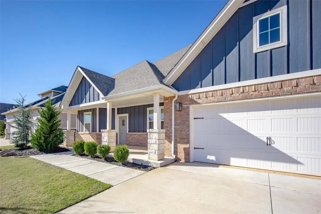 This beautiful craftsman-style home, built in 2021, offers 2,188 square feet of well-designed living space with three bedrooms, two and a half bathrooms, and a study that can easily serve as a home office or flex room. Located in the Piedmont school district and within walking distance of Northwood Elementary, this home combines convenience and comfort in an excellent location. The open-concept living, kitchen, and dining area is perfect for daily living and entertaining. The kitchen features stainless-steel appliances, quartz countertops, and plenty of cabinet and storage space. Wood-like tile flooring and modern light fixtures give the main living areas a clean and contemporary feel. The primary suite offers a relaxing retreat with a private en-suite bathroom, while the secondary bedrooms and bathrooms are designed with functionality in mind. Additional features include a three-car tandem garage, a storm shelter, and a front and backyard underground sprinkler system for easy lawn care. Enjoy outdoor living on the covered front and back porches, perfect for relaxing or gathering with friends. A tankless hot water system provides efficiency and convenience. Situated near the Northwest Expressway and Kilpatrick Turnpike, this home offers quick access to shopping, dining, and entertainment. Schedule a showing today to see all this home has to offer!