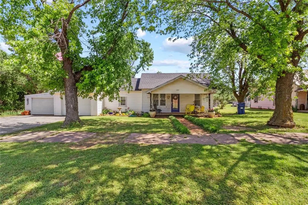 Prepare to embrace peaceful living in this quaint and cozy bungalow home. Located in the tranquil town of Custer City, OK, this home features a spacious yard backing into a creek. Enjoy shade from the mature trees surrounding the property and the covered porch. Upon entry you’ll be greeted by combination of modern and authentic touches such as sleek fixtures and original hardwood floor. In the kitchen is functionally sleek system of stainless steel appliances, ample cabinetry, & smooth cabinets. Each of the two bedrooms offer adequate space for your needs. The primary bathroom boasts an elegant freestanding tub, modern vanity + backsplash, and charming tile flooring. The secondary bathroom offers a shower, traditional vanity, and open cabinet for convenience. Attached to the home is a two car garages, each with their own door. Other outdoor features include a shop for extra storage and a storm shelter for peace of mind. This serene rural oasis is ready for you to move in! Schedule your showing today.