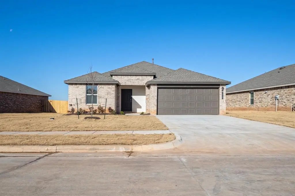 The impressive Denton plan is a single-story home offering 1,575 square feet, 3 bedrooms, 2 bathrooms, and a large living area. A beautiful open kitchen with all the gourmet features including Whirlpool Stainless Steel appliances, a gas range, quartz countertops and a large kitchen island! The bedroom ensuite is in the back of the house for complete privacy, a spacious bathroom and walk-in closet. . Additional features include a tankless hot water system ensures you'll always have hot water when needed. “Home is Connected” smart home features which include a camera doorbell, Kwikset keypad lock, and smart switch. The exterior features include full sod yard with a landscape package in the front, and a covered patio! Situated just off Mustang Road towards Kilpatrick Turnpike and I-40, Fireside Creek offers easy access to major roadways and is conveniently located near restaurants, grocery stores, and other amenities.