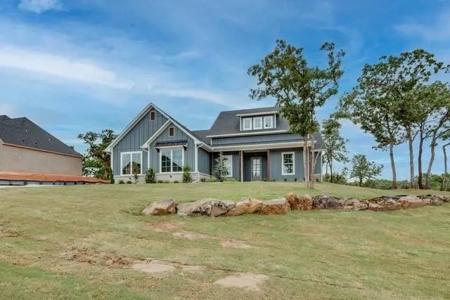 This magnificent new home located in Guthrie, sits on .84 acres and is a MUST SEE! Step into a grand entry leading to an open living area filled with natural light, custom built-ins, and a cozy fireplace. The open-concept kitchen and dedicated formal dining area are perfect for both everyday meals and entertaining guests. The kitchen boasts high-end appliances, a center island with bar seating, and ample cabinet space. There is a well-appointed study providing an ideal space for work, hobbies, or relaxation, this flexible space adds convenience and privacy to the home’s already impressive layout. With a large pantry, private study, large utility room, and an oversized powder bath, this home combines beauty with practicality. The primary suite is generously sized and boasts double vanities, a oversized walk-in shower, a spa like soaking tub, and an incredible closet. The large secondary bedrooms both include walk in closets and share a beautiful Jack-and-Jill bathroom. Step out back to enjoy the amazing backyard under the massive covered porch and enjoy the cool cozy nights next to the outdoor fireplace.