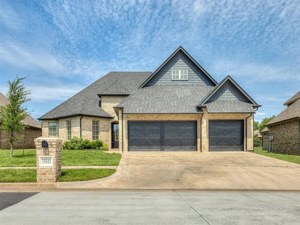 QUALITY CRAFTSMANSHIP in this TIMELESS Tudor. Premier Edmond Location in HIGHLY DESIRABLE Lakes at Traditions. This exceptional gated community offers a multitude of amenities, including a clubhouse, gym, pool, playground, pond, and numerous walking trails. "STATELY" STACKED STONE ENTRY with a well thought out floor plan. Three bedrooms, two full bathrooms, two half bathrooms, plus a bonus room upstairs that includes one of the half baths. Upon entering, you will find the living room and kitchen flowing together seamlessly. Chef's kitchen with SPACIOUS working island with ample cabinets and space for 8 barstools. An ENTERTAINERS DREAM! Office space/formal living or dining is conveniently situated just off the living room and features exquisite chandelier and french doors. NATURAL LIGHTING THROUGHOUT. Bedrooms two and three are connected by a Jack and Jill bathroom, while the primary suite is located on the opposite side of the house, featuring a spacious master bathroom and a closet that leads directly to the laundry room. LOCATION PERFECTION conveniently positioned near the Broadway Extension and turnpike. Walk or bike to EDMOND's FINEST shops and eateries. WELCOME HOME!