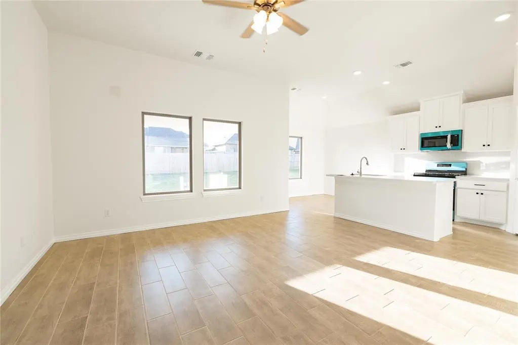 FENCING AND BLINDS INCLUDED! This Bogan floor plan includes 1,510 Sqft of total living space, which includes 1,400 Sqft of indoor living space and 110 Sqft of outdoor living space. There is also a 395 Sqft, two-car garage with a storm shelter installed. This home offers 3 bedrooms, 2 bathrooms, 2 covered patios, an office, and a utility room. The living room welcomes wood-look tile, large windows, a ceiling fan, and Cat6 wiring. The kitchen has 3 CM quartz countertops, stainless-steel appliances, wood-look tile, custom-built cabinets with decorative hardware, and stylish tile backsplash. The primary suite features noteworthy carpet flooring, a ceiling fan, Cat6 wiring, and perfect-sized windows. The upgraded primary bath offers a dual sink vanity with an elegant countertop selection, a tub/shower combo, an elongated water-saving toilet, and a walk-in closet! The outdoor living area is covered and has fully sodded yards with a water saving sprinkler system. Other amenities include a tankless water heater, a fresh air intake ventilation system, R-15 and R-38 insulation, an air filtration system, and so much more!