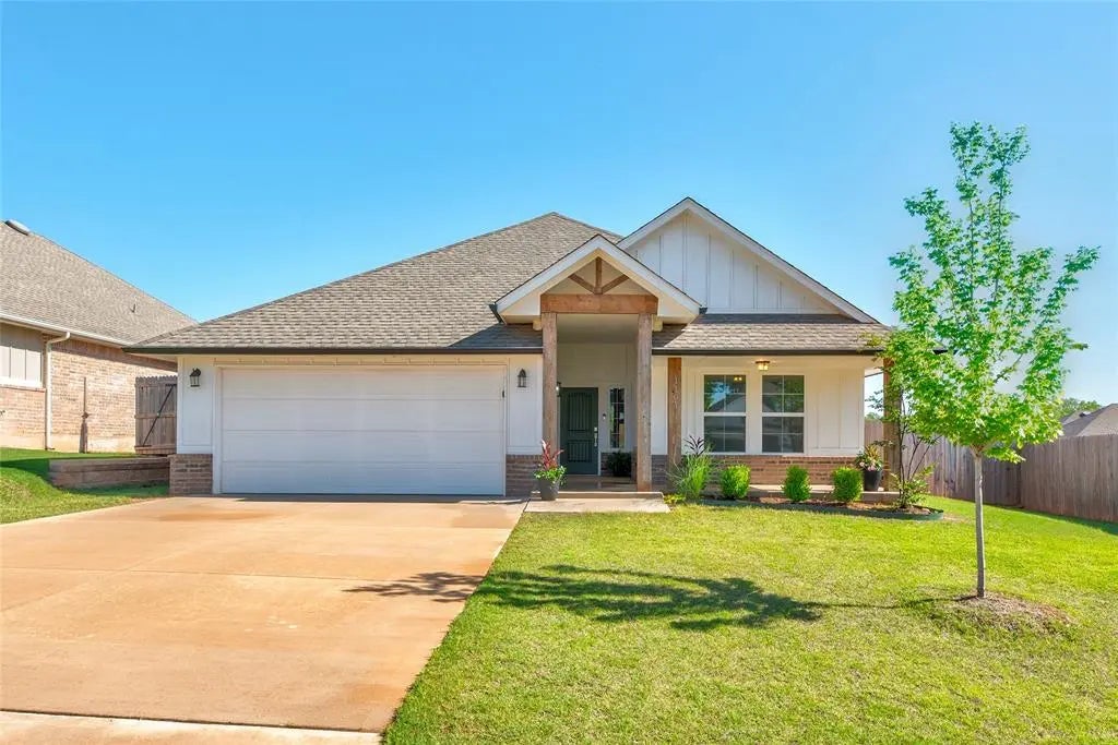 NEW PRICE IMPROVEMENT!!! Motivated sellers!! Beautiful, move in ready, 3 bed, 2 bath home with an office! Nearly new, built at the end of 2022 and offering 1,763 sq ft of open living space. Features include tall ceilings, an oversized kitchen island, granite countertops, a large walk-in pantry, and spacious dining and living area. The primary suite includes a deep soaking tub, oversized shower, large walk-in closet, dual sinks and tons of storage. Enjoy a large backyard, 2-car garage, attic storage, and high-speed OEC Fiber internet. Located in the charming Azalea Farms neighborhood, you’ll love the small-town feel, just minutes from Norman. Large GE french door refrigerator with bottom freezer can stay with strong offer. Builder foundation warranty included. Owner has an inactive real estate license