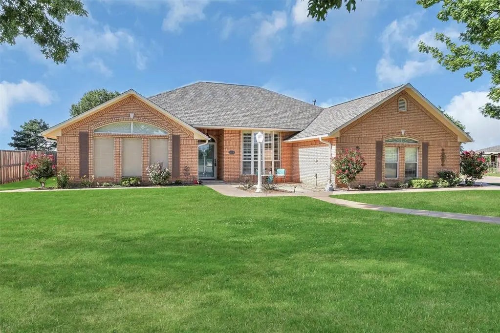 **BEAUTIFUL 4- BED, 3 BATH HOME IN GREAT NEIGHBORHOOD! You’re going to love this well-kept 4-bedroom, 3-bath brick home in one of the most sought-after neighborhoods in Altus. It has plenty of space with two living areas, a formal dining room, a breakfast nook, and a bright sunroom. When you walk through the oversized front door, you’ll step into a tiled entryway that opens to a large living room with tall ceilings and plantation shutters that carry throughout the home. The formal dining room has great character with wainscoting and a gorgeous chandelier. The kitchen is roomy and functional, with a working island, tons of cabinets, recessed lighting, built-in oven and cooktop, and a big skylight that brings in lots of natural light. There are pull-out drawers in the pantry and also under the sink and stove. The second living area (family room) has a gas log fireplace, built-in shelves, and more recessed lights. The primary suite is huge and has brand new carpet, a pan ceiling, two big walk-in closets, double sinks, a soaker tub, private toilet room, and a beautifully updated walk-in shower done by Zintex. One of the guest bathrooms was also updated and features a tall double vanity and large walk-in shower. Extras include; Laundry room with sink, folding table, and storage, Sunroom with blinds and a refrigerator, 2-car garage with storage, plus another fridge and freezer. Covered back patio, privacy fence, and storage building. Sprinkler system in the front and back, rain gutters. Roof replaced in Aug. 2024 (50-year warranty. New carpet in the family room and one bedroom (June 2025). Two water heaters and a 10-year warranty on the A/C compressor. This home is move-in ready and has all the space and features you’ve been looking for. Don’t miss out—come take a look!