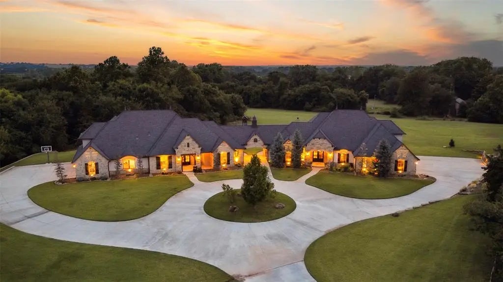 Perfectly suited for multi-generational living, this one-of-a-kind custom-built estate offers refined, peaceful living on 3.829 acres of gated property. This exceptional property features two beautifully crafted homes, each with high-end finishes, spacious layouts, and modern efficiencies—all while offering easy access to the conveniences of city life. House A spans 3,374 square feet and includes 4 bedrooms, a dedicated office, a versatile flex room, a bonus room, 3.5 bathrooms, and a 3-car garage. Downstairs, the thoughtful layout features an open concept main living area with plenty of natural light, a luxurious primary suite, a jack-and-jill bathroom between two secondary bedrooms, and a half bath with outdoor access for easy poolside use. The flex room can easily serve as a fifth bedroom. Upstairs, you'll find a bedroom, bonus room, and full bathroom. Step outside to your private oasis with an inground, heated, gunite, salt water pool and spa—perfect for entertaining or relaxing. House B offers 3,007 square feet of equally impressive living space, including 3 bedrooms, an office/flex room, an upstairs bonus room, 2 bathrooms, and a 4-car garage. From the moment you walk in, the open floorplan full of natural light and custom finishes make you feel right at home. Enjoy stunning backyard views that overlook lush green, natural surroundings, often visited by wildlife. Both properties are equipped with energy-efficient spray foam insulation, tankless water heaters, ice makers, water softeners, and safe rooms—showcasing the thoughtful attention to detail that sets it apart. Whether you're seeking space to spread out or a luxurious retreat with easy access to I-35, this property delivers comfort, sophistication, and unmatched versatility.
