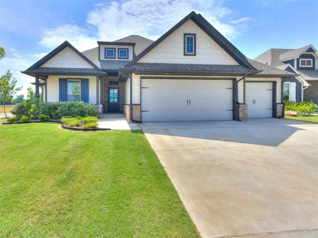Welcome to this beautifully designed Sage Bonus Room floor plan in the sought-after Scissortail Crossing community in Yukon! This home boasts 2,550 Sq Ft of total living space, including 2,300 Sq Ft indoors and 250 Sq Ft of outdoor living, plus a 625 Sq Ft insulated 3-car garage with a built-in storm shelter and a dedicated freezer plug. With 4 bedrooms, 3 full bathrooms, a large bonus room, and a covered patio, this home is both stylish and functional. The open-concept great room features a stunning stacked stone gas fireplace, 10-foot coffered ceilings, wood-look tile flooring, custom blinds, and large windows that fill the space with natural light. A barn door adds a charming touch. The chef’s kitchen includes double ovens, a pot filler, pull-out drawers, soft-close cabinetry with hardware, a center island, modern backsplash, 3CM countertops, a spacious pantry, and cabinetry that extends to the ceiling. Retreat to the primary suite with a sloped ceiling detail, plush carpet, and a spa-like bath with double sinks, a walk-in shower, a Jetta Whirlpool tub, and a large walk-in closet. Enjoy entertaining on the extended covered patio with a TV hookup, gas line, and electrical in the eaves for holiday lighting. Additionally the home includes a mud bench, Healthy Home technology, whole-home air purification system, tankless water heater, and a fence with a double gate that opens to the street. Fridge, Washer and Dryer stay!