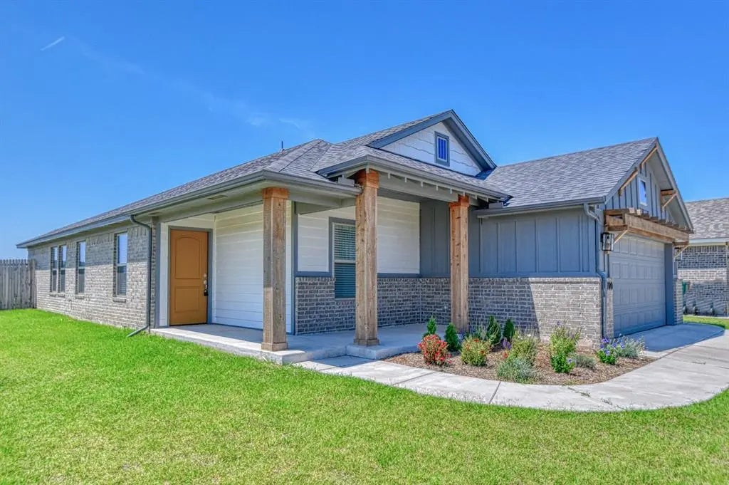 Charming Craftsman style 3 bedroom home located on a corner lot in the quiet neighborhood of Bison Creek. The kitchen boasts beautiful quartz countertops, gas range, and large island/eating surface. The spacious open living/dining floorplan is great for entertaining! Large utility room with folding surface and ample storage. Convenient drop zone by the garage for coats, bags, and shoes for those on the go! The split plan provides distance between the primary suite and secondary beds and bath. Piedmont schools. Future Bison Creek amenities include a neighborhood clubhouse and pool! Owner Licensed.