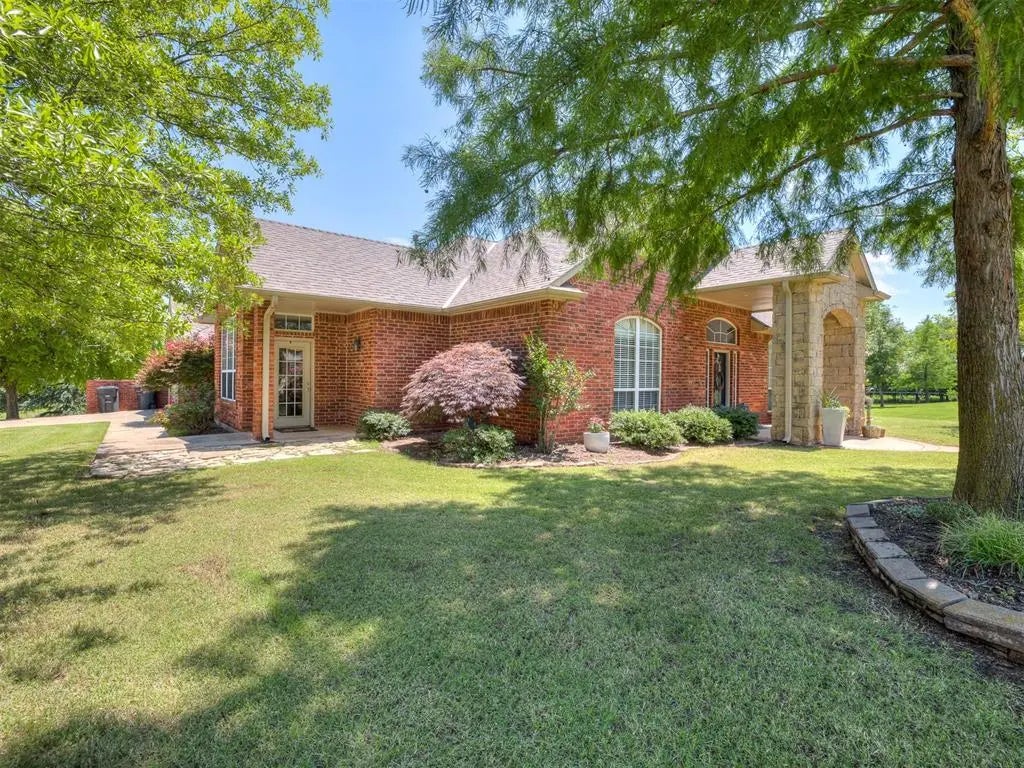 Discover a truly rare opportunity to enjoy the serenity of country living without sacrificing the convenience of city life. Nestled on a picturesque 5.5-acre lot, this custom-built estate offers the perfect blend of privacy, comfort, and accessibility — all located just minutes from the vibrant Moore 19th Street shopping and dining district and the beautiful Belmar Golf Course. Boasting over 3,100 square feet of well-designed living space, this home features 3 generously sized bedrooms, 2 dining areas, a sprawling main living room, and an enormous bonus room with its own private bathroom — ideal for a guest suite, game room, or home theater. Everywhere you turn, this property exudes thoughtful craftsmanship and timeless appeal. The chef’s kitchen is adorned with sleek granite countertops, custom maple cabinets, a built-in china cabinet and hutch, and seamlessly flows into the tiled walkways that connect each living area with style and ease. Step outside and you'll find a spacious covered patio that overlooks your own private oasis — a stocked pond and tree-lined creek that provide a stunning natural backdrop year-round. Additional highlights include a 30x40 workshop—perfect for hobbies, storage, or a home-based business, a high-impact, hail-resistant roof for long-term peace of mind, an in-ground sprinkler system to keep your expansive grounds lush and green, and full city utilities. Whether you're sipping your morning coffee on the patio, fishing in the pond at sunset, or simply enjoying the open sky and gentle breeze, this property offers a lifestyle that's hard to match. Located in the highly sought-after Moore School District, this home combines the best of all worlds — country charm, city convenience, and room to roam. Opportunities like this don’t come along often. Schedule your private showing today and come experience the best of both worlds — space, serenity, and style, right in town.
