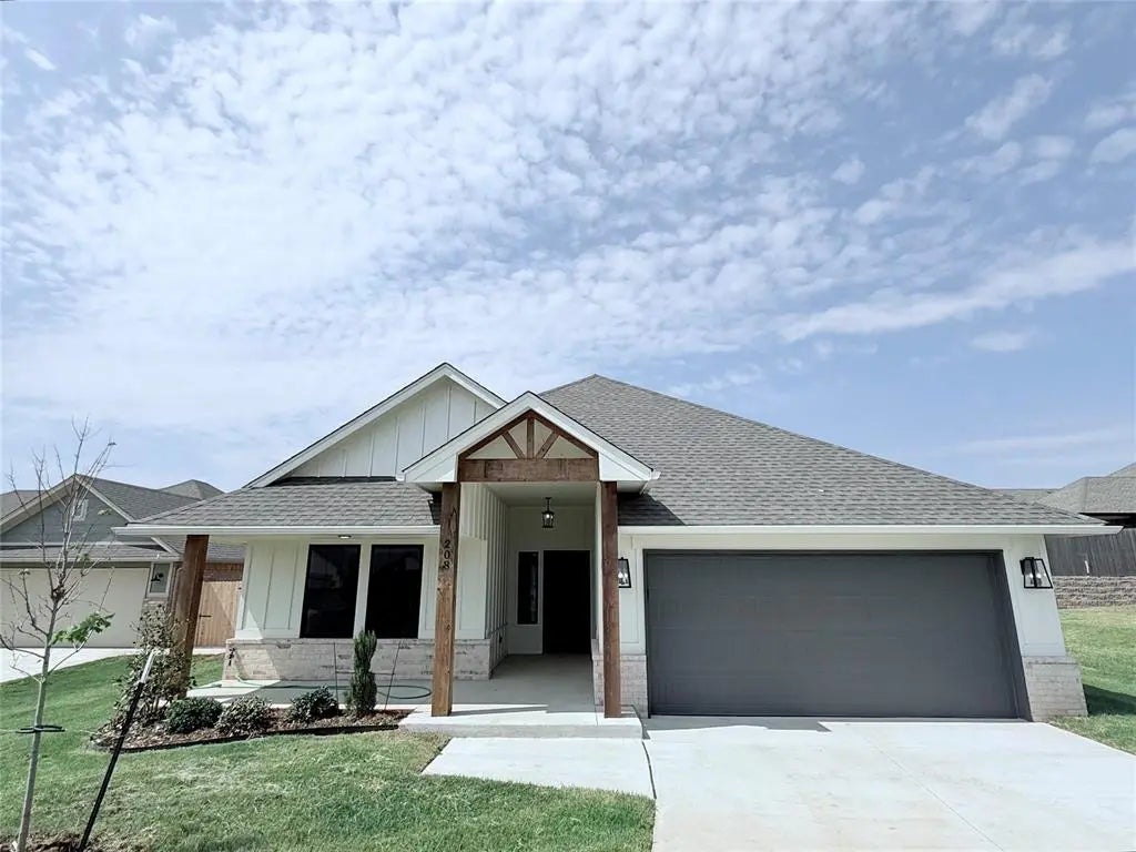 ****ASK US ABOUT OUR BUILDER INCENTIVES*** Open concept design creates a spacious and inviting atmosphere. A ceiling fan enhances ventilation and comfort. The tile-framed electric fireplace with a mantle adds a cozy and stylish focal point. The open concept extends to the kitchen, connecting it seamlessly with the living room. Notable features include a large center island with a sink, custom cabinetry, tile backsplash, and quartz countertops. The kitchen has a gas stove, oven, and microwave. A spacious pantry provides ample storage space. Laundry access is conveniently located nearby. A mud bench adds extra storage and organization. Your Primary Retreat is Separated from other bedrooms for added privacy. The primary bathroom boasts a double vanity, a soaking tub, and a HUGE primary closet. Each guest bedroom features large closets, providing ample storage for guests. The guest bathroom is well-appointed with a vanity, a large mirror, and a tiled shower-tub combination. A large, covered patio extends the living space outdoors, providing a place to relax and entertain. Including a 10-year and manufacturer’s warranty ensures ease of maintenance and peace of mind. This thoughtfully designed home offers aesthetic appeal and functional features for comfortable living.