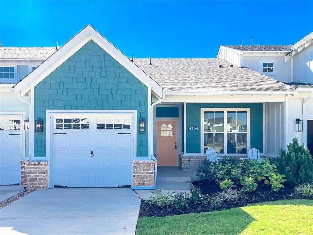 Come experience coastal-style living in Bungalow Heights! This lock-and-leave lifestyle community is one you won't want to miss out on. Bungalow Heights is a coastal-inspired community that is gated with a clubhouse, fitness center, resort pool, outdoor entertaining spaces, and a lake with walking trails. This home is in our Nantucket floor plan and it has a dark teal exterior with a fun tangerine front door. This adorable bungalow features two bedrooms, two full bathrooms, a mud bench for your catch-alls, a vaulted living room with beams, and an entertaining kitchen with a built-in dinette that overlooks the living room. Go ahead and sell that lawnmower of yours because in Bungalow Heights you will never have to mow your lawn again with our lock and leave lifestyle which includes yard maintenance and exterior maintenance. You are going to Love Where You Live in Bungalow Heights!