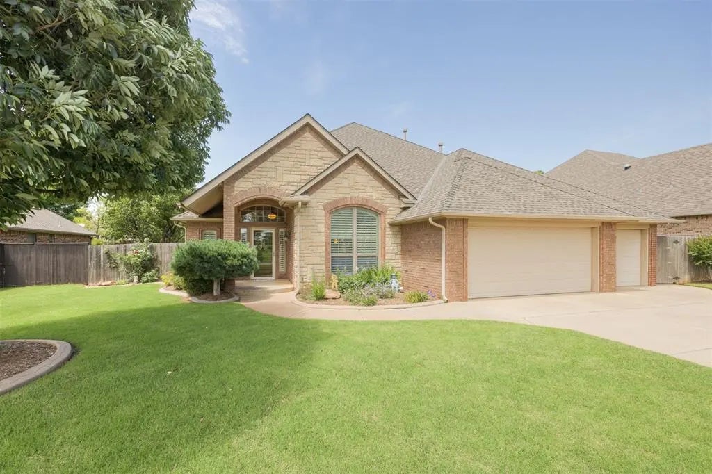 In the backyard, relax under the large covered patio large enough for outdoor furniture, and unwind surrounded by an established garden and mature trees—your private outdoor escape. Sprinklers in the front and back yards keep the grass looking lush all summer long, while a storm shelter in the 3-car garage will keep you prepared for the Oklahoma storms.
