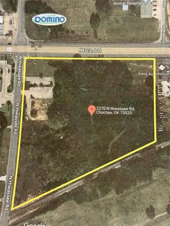 Great development opportunity on the historic HWY 62/23rd street corridor on busy corner in Choctaw city Limits. 8+ acres with approximately 600' frontage on 23rd Street and 630' on Hiawassee. Could be split into two lots. Lot #1 on NE corner of 23rd St is 2+ acres MOL with city utilities. Great for dental, medical, coffee shop, fast food, retail or vet clinic. Lot #2 is 5+ acres on NW corner of parcel. Possible uses are storage units, food truck park, pop-up shops, garden center, carwash, hardware store. It has utilities within 100'. Daily traffic count is over 16,000. Minutes to Kickapoo Turnpike/I40/Turner Turnpike.