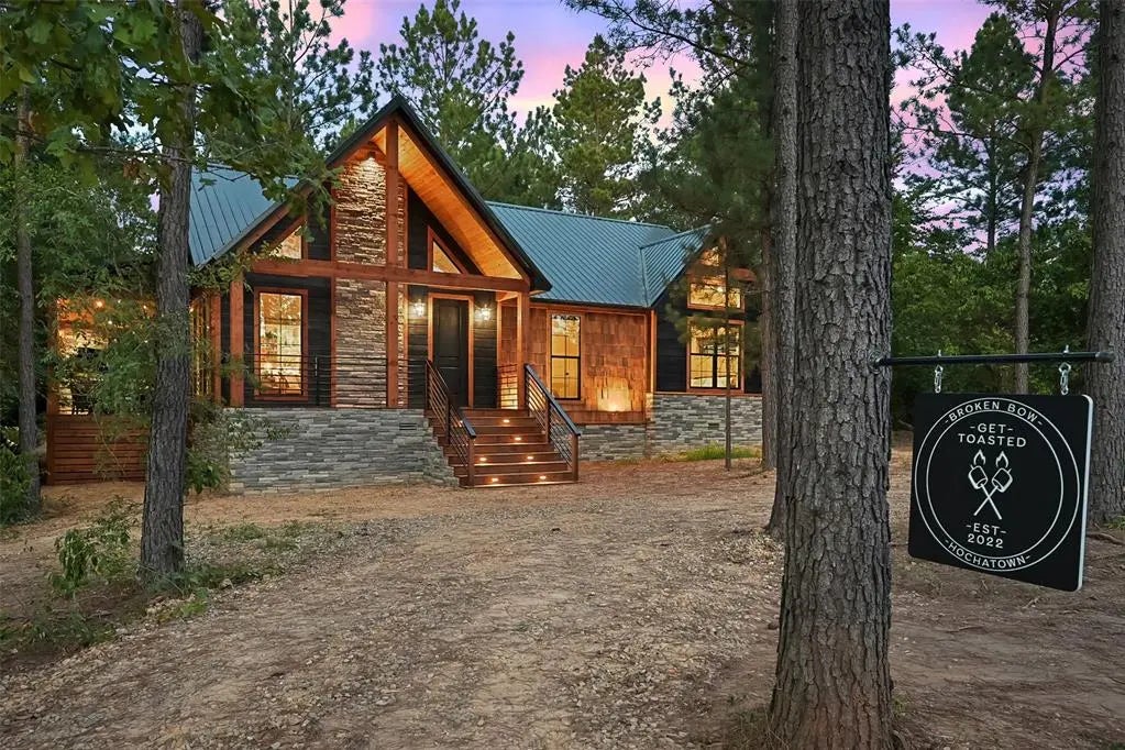 GET TOASTED! is a beautifully designed 4 bedroom 3 bath cabin that sleeps up to 10 guests in comfort! Strategically nestled near Broken Bow lake and Beavers Bend State park, it offer a perfect mix of rustic ambiance and modern flair. Two king suites each with its own bathroom, a bunk room with 4 bed set up perfect for the kiddos. Open concept kitchen flows into living and dining spaces; ideal for gatherings. Massive stone floor to ceiling fireplace in the living room for coziness and comfort on cold evening get aways. Packed with entertainment, shuffleboard, vintage arcade games, foosball, yard games, fire pit, and outdoor hot tub, and a slide off the deck too. Spacious outdoor deck with grill, 7 person hot tub, Adirondack-style chairs surrounding the fire pit, watch while others are playing games. Highly rated by guests on all sites, guest praise cleanliness, family-friendly vibe, entertainment options, and smart technologies of the cabin. Get Toasted is a top tier, family-friendly cabin retreat combining luxury finishes and smart features, all wrapped in a fun-filled, nature-inspired setting. Aiming for both adventure and relaxation in Broken Bow. Come make this your perfect vacation home or add to your porfolio of STR.