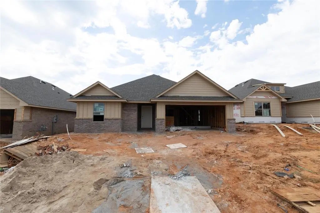 This Bogan floor plan includes 1,510 Sqft of total living space, which includes 1,400 Sqft of indoor living space and 110 Sqft of outdoor living space. There is also a 395 Sqft, two-car garage with a storm shelter installed. This home offers 3 bedrooms, 2 bathrooms, 2 covered patios, an office, and a utility room. The living room welcomes wood-look tile, large windows, a ceiling fan, and Cat6 wiring. The kitchen has 3 CM quartz countertops, stainless-steel appliances, wood-look tile, custom-built cabinets with decorative hardware, and stylish tile backsplash. The primary suite features noteworthy carpet flooring, a ceiling fan, Cat6 wiring, and perfect-sized windows. The upgraded primary bath offers a dual sink vanity with an elegant countertop selection, a tub/shower combo, an elongated water-saving toilet, and a walk-in closet! The outdoor living area is covered and has fully sodded yards with a water saving sprinkler system. Other amenities include a tankless water heater, a fresh air intake ventilation system, R-15 and R-38 insulation, an air filtration system, and so much more!