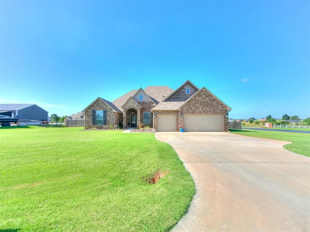 Located just outside city limits on nearly an acre in the quiet Summit neighborhood, this 4-bed, 3-bath home has a great layout and a long list of recent updates and features. New carpet runs throughout the entire home, and all countertops—including bathrooms—have granite. The kitchen is open to the living and dining area, with plenty of natural light. The secondary bedrooms are connected by a Jack-and-Jill bathroom, and there’s a dedicated mudroom with a separate laundry area. The primary suite includes a Jacuzzi tub, double vanities, and a walk-in closet. There's also a large, floored attic for extra storage. The backyard is fully enclosed with a picket fence, both the front and back yards have bricked flowerbeds with a sprinkler system and the back porch has an amazing view of the sunsets that only Oklahoma can create. There's also an above-ground pool for summer days. A full security system is already in place, with cameras on all four corners of the house and one inside the living room. This home is in the Deer Creek school district and offers a peaceful, country feel with easy access to amenities and city conveniences.