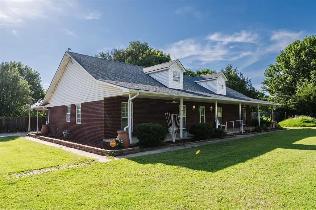 Welcome to this charming brick ranch-style home nestled in the desirable area near the golf course in Pauls Valley! Built in 2000 and offering 2,166 square feet of comfortable living space, this beautifully maintained 4-bedroom, 2.5-bath house is set on a spacious 1.14-acre lot adorned with mature shade trees. Inside, you’ll find a well-designed split bedroom floorplan with laminate and ceramic tile flooring throughout. The spacious living area features a cozy gas fireplace and is filled with natural light perfect for both relaxing and entertaining. The kitchen had solid honey oak cabinetry, granite countertops, a walk-in pantry, a breakfast nook, and a separate formal dining room. The primary suite offers privacy, while two of the secondary bedrooms are connected by a convenient Jack-and-Jill bathroom. The fourth bedroom is located near the front entry and is adjacent to a half bath, making it ideal for guests or a home office. A spacious laundry room includes a utility sink and a fold-down ironing board for added functionality. Outside, you’ll enjoy a 2 car covered attached carport, an RV carport with hookups, an in-ground storm cellar, covered front porch for sitting and sipping your morning coffee or a glass of sweet tea, and a large backyard ready for you to create your own personal oasis. Or drive your golf cart over the course and play a round of golf after work! Brand-new central heat and air unit installed June 2024 (with remaining manufacturer warranty), 5 YO roof. This move-in-ready home offers the peaceful setting you’ve been looking for, schedule your private showing today!