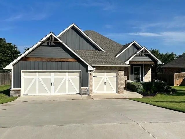 This lovely Taber Black Series craftsman style home is located in one of East Edmond's most beautiful gated communities. Highgarden offers a community pool, playground, ponds and walking trails for you to enjoy. This one-owner home has been lightly lived-in and has new carpet and plantation shutters. The open floorplan has a wonderful kitchen with huge island and bar. Black series upgrades include farm sink, 3 cm quartz countertops, decorative tile backsplash, custom cabinetry to ceiling, double oven, 5-burner gas range and large walk-in pantry. Don't miss the additional storage included in cabinets under the island bar. The kitchen opens to the large living/dining area with absolutely beautiful coffered ceiling, a gas log fireplace with stacked stone surround and a large coffee bar. The large windows allow an abundance of natural light to fill the home. Split plan with the primary suite featuring trayed ceiling, crown molding and bath with double vanities, European style walk-in shower, whirlpool tub and large walk-in closet. Two secondary bedrooms and a bath downstairs, and study or fourth bedroom off entry. Large bonus room upstairs with full bath and video screen that stays. This space would also make a great media/game room or large guest suite. Nice sized utility room and mud bench at garage entry. A large covered back patio with fireplace is perfect for relaxing, cookouts, or just enjoying beautiful sunsets. Custom roller shades and ceiling fans add shade and comfort. The home has a Rinnai tankless hot water heater, whole home air purification system, R-44 insulation and storm shelter in garage floor. This is a beautiful home! Seller is motivated and home is priced well below comps. Schedule your showing today!