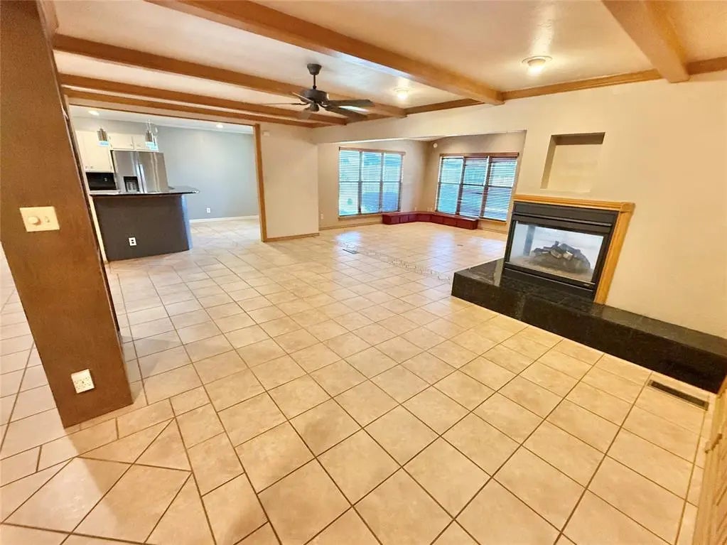 Welcome to your dream home! This beautifully maintained single-family residence offers 3 spacious bedrooms and 2 full bathrooms across a generous 2,000 square feet of living space. Designed with comfort and style in mind, the open-concept layout features two inviting living rooms centered around a stunning three-way modern fireplace—perfect for cozy gatherings or entertaining guests. The kitchen comes equipped with filtered water and overlooks the expansive living area, creating a seamless flow for everyday living. Step outside to enjoy a large covered back patio, ideal for relaxing evenings or weekend barbecues. The freshly painted exterior, two handy storage buildings, and a privacy-fenced backyard add both charm and functionality. Additional highlights include a two-car garage, a full sprinkler system, and thoughtful touches throughout. Don't miss the opportunity to make this well-appointed home yours!