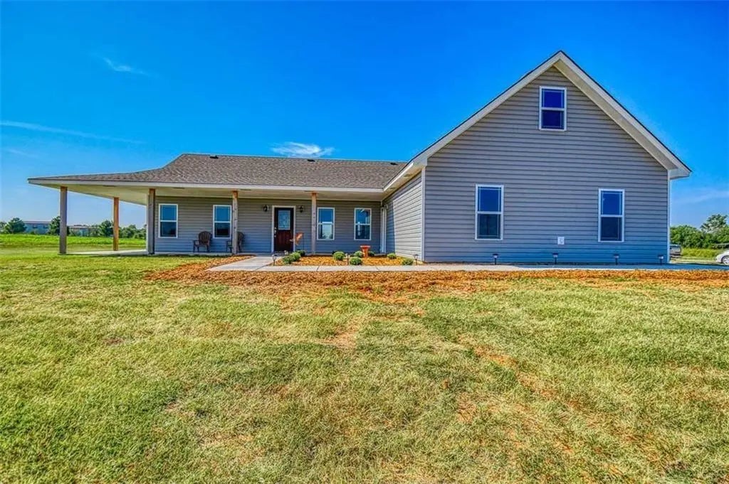 Escape to your own private oasis with this stunning 2021 farmhouse, perfectly situated on 5 sprawling acres! The heart of this home boasts an open-concept kitchen and living area, designed for modern comfort and entertaining, featuring a gas stove, ample storage with soft-close drawers, a walk-in pantry, and a large island with elegant granite countertops. Soaring 15-foot ceilings in the living room create an airy and grand ambiance. Retreat to the expansive primary suite, complete with a sliding door leading to a luxurious en-suite bathroom featuring a jetted tub, a spacious walk-in shower, and a generous closet, all complemented by separate vanities. Enjoy breathtaking Oklahoma sunsets from the incredible 1100 sqft wrap-around porch. The versatile upstairs game room offers potential for an additional bedroom, adapting to your family's needs. Plus, with spray foam insulation throughout, you'll enjoy superior energy efficiency and comfort year-round. This is more than a home; it's a lifestyle! Don't miss your chance to own this exceptional property – call today to schedule your private tour!