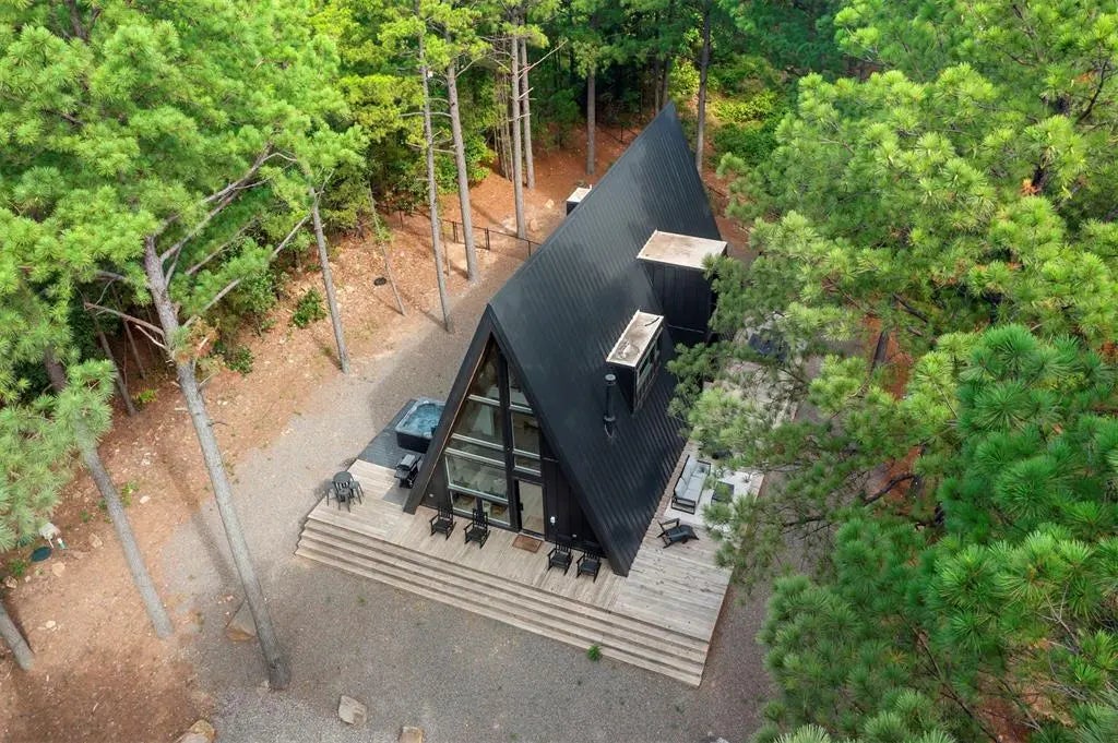 Introducing "Black Pines" — a thoughtfully designed A-frame cabin nestled in the pines that blends modern elegance with timeless simplicity. This exceptional property brings the nature in with oversized windows and high end design. Step inside to discover a beautifully curated interior, where clean lines, warm textures, and a minimalist aesthetic create a sophisticated yet cozy and inviting atmosphere that sleeps 6. Offering a downstairs queen bedroom suite with a dedicated work space as well as an additional upstairs king bedroom plus a king bed in the trendy loft where you can can soak in the view of the stars and wake up feeling like you slept in the tall pines with the beautiful views surrounding you! This gorgeous cabin is uncompromisingly simple with contemporary sophistication. Every corner of the cabin reflects attention to detail and intentional design. Outside, unwind in the private hot tub nestled beneath the pines, or gather around the fire pit for relaxed evenings under the stars.The backyard is perfect for young children or for guests to bring the pups along with the peace-of-mind of a fenced-in yard for them to explore and play to their heart's content. Set in a peaceful natural setting, "Black Pines" is more than just a cabin, it’s a modern sanctuary designed for relaxation, connection, and escape. Don't miss your opportunity to own this unique contemporary retreat. Schedule your private showing today.