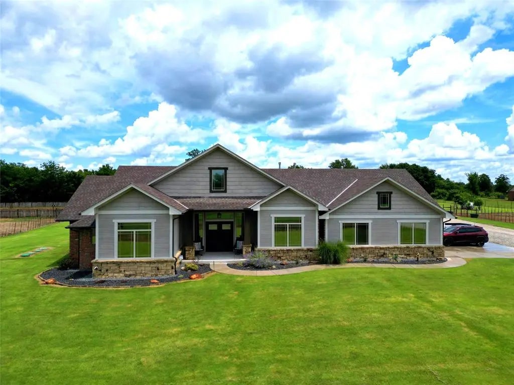 DID YOU NOTICE THE IMPROVED PRICE!!! This is the nicest small ranch I have ever seen, with everything a person could ask for. With 3 - 1/4 acre holding pens 1-3/4 acre holding pen, and 1- 2.75-acre pen. A 100' X 100' lighted arena and a 35' round pen to work your horses. 9 very nice wood and metal stalls with water misting for those hot summer days. A 35' X 50' shop/barn for storing your tack, hay, and maintaining your equipment. Did I mention the house, you are going to want to invite your friends and family over to the large 4-bedroom 3.5-bathroom home with an open floor plan. When entering the double door entry you are greeted by a rock, gas fireplace with 10' ceilings, just to the right is an office or could be a fifth bedroom if needed. A cook's kitchen with a large island/bar, with sink, work area and stove top right across from each other, stainless appliances. granite counter surfaces and ceramic tile floors, set off the plentiful dark stained cabinets with a walk-in pantry. The primary suite has a large bath with separate shower, jetted 2 person tub and double sinks. The large primary closet has upper and lower hanging rods for plenty of storage. The den is tucked in just behind the kitchen for a relaxing place after a long day, the half bath and mud room sit just between the kitchen and den. The 30 X 20 covered patio is a great place to enjoy the outside with connections for electric and cable for your outdoor TV. Bedrooms 2 and 3 share a Jack and Jill bathroom with separate sinks, bedroom 4 has a private bath. When those Oklahoma storms roll in you can take shelter in your own cellar located in the garage.