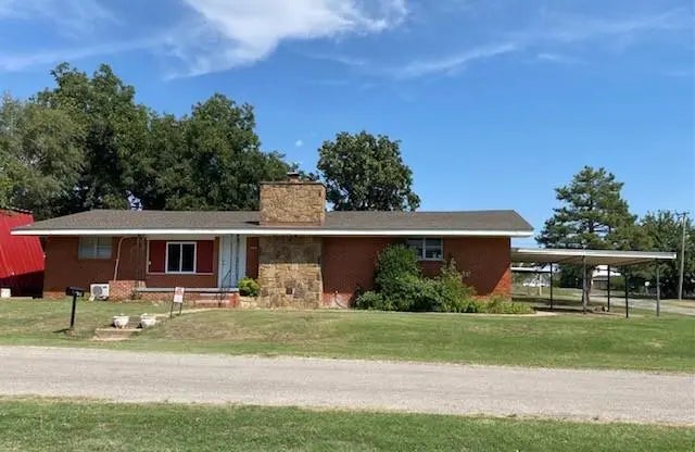 Remodeled Brick home on a corner lot with 2 bedrooms and 2 bathrooms. The large living area features a stone woodburning fireplace and lots of space. The eat-in kitchen has a breakfast bar, updated cabinets and new appliances. The home includes a 2-car garage and a 2-car carport for plenty of parking. A flagstone patio in the backyard has lots of shade for outdoor relaxing. (There is a large metal barn/ workshop located beside the house that is not included in the sale price but is available for an additional cost.)