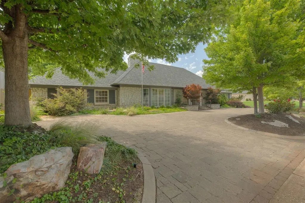 Beautiful classic stacked stone traditional on one level at the corner of 68th and Country Club Drive. Circle drive off Country Club Drive brings guest to front door while entrance to garage is off separate driveway off 68th street. From the front door off circle drive a large entry greets you and leads you to an open floor plan with big rooms, high ceilings and lot’s of tall and wide windows throughout including beautiful bay window in front living area. Two large living areas each with high ceilings separated by 2 way stone fireplace.The family and friends entrance is through a small courtyard off the driveway by garage that leads to a door into kitchen. Charming spacious kitchen and adjacent eating area. Two beds on one side of the house and guest bed on the other end. Each bed has a private bath. Covered and open patios in very private tree shaded backyard. Wood and brick floors. Attic is very big and the tall roof would allow adding additional square footage upstairs. You immediately see and feel the quality of the materials throughout and the care taken in maintaining them. This is a true gem and an excellent location.