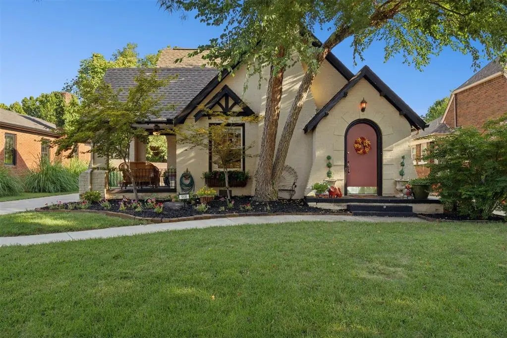 NEW ROOF COMING SOON - Nestled in Historic Crown Heights neighborhood, this beautifully maintained English Tudor cottage offers the perfect blend of preserved character and modern comfort. Whether you're working remotely, commuting downtown, or hosting friends on the weekend, this home complements a dynamic, contemporary lifestyle. From the moment you arrive, you'll be drawn in by the home's undeniable curb appeal - mature trees, thoughtfully landscaped flower beds, and a spacious covered front porch ideal for relaxing on summer evenings. Inside, you'll find original hardwood oak floors, arched doorways, and a cast iron wood-burning stove, classic 1930's character that lend warmth to the space. The living room is light-filled and welcoming, perfect for casual gatherings or winding down. It flows effortlessly into the dining room and updated kitchen, complete with granite countertops, ample cabinetry, a gas range, and a butler’s pantry that doubles as a serving area or coffee bar. Two bedrooms and a full bathroom with classic black and white tile complete the main level. Upstairs serves as a primary bedroom retreat, featuring a cozy sitting area, walk-in closet, remodeled en suite bath, and a private balcony overlooking the backyard. The basement provides versatility with a second fireplace - perfect for a home gym, studio, or game room - along with a spacious laundry and storage area to keep everyday clutter tucked away. A detached two-car garage adds even more storage and convenience. Located just a short stroll or bike ride from the vibrant Western Avenue District and minutes from Classen Curve, the Paseo, and downtown OKC, this home offers unmatched access to local shopping, dining, nightlife, and culture - all while enjoying the peaceful charm of a tree-lined historic neighborhood. This Crown Heights gem is a rare opportunity to own a piece of Oklahoma City history without compromising comfort, character, or style. Schedule your private showing today!